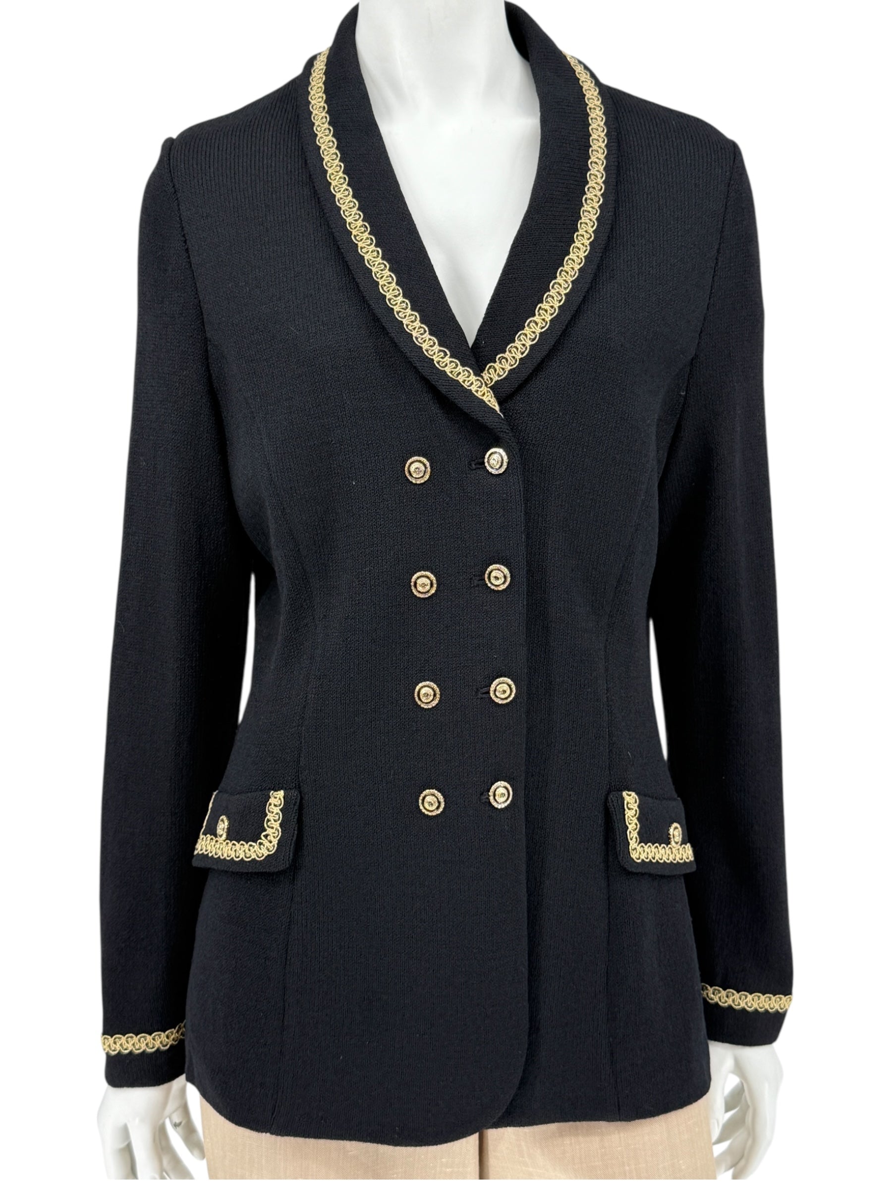 St. John Collection by Marie Gray Black Knit Blazer with Gold Trim – Size 10