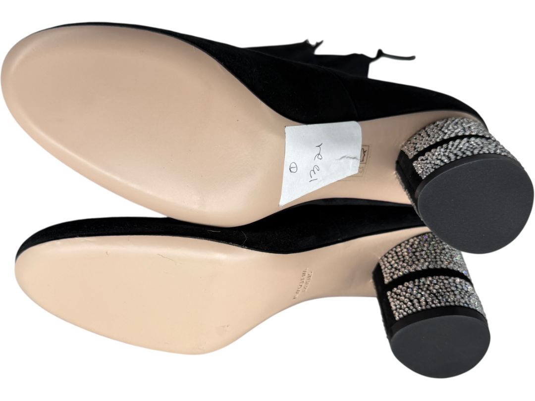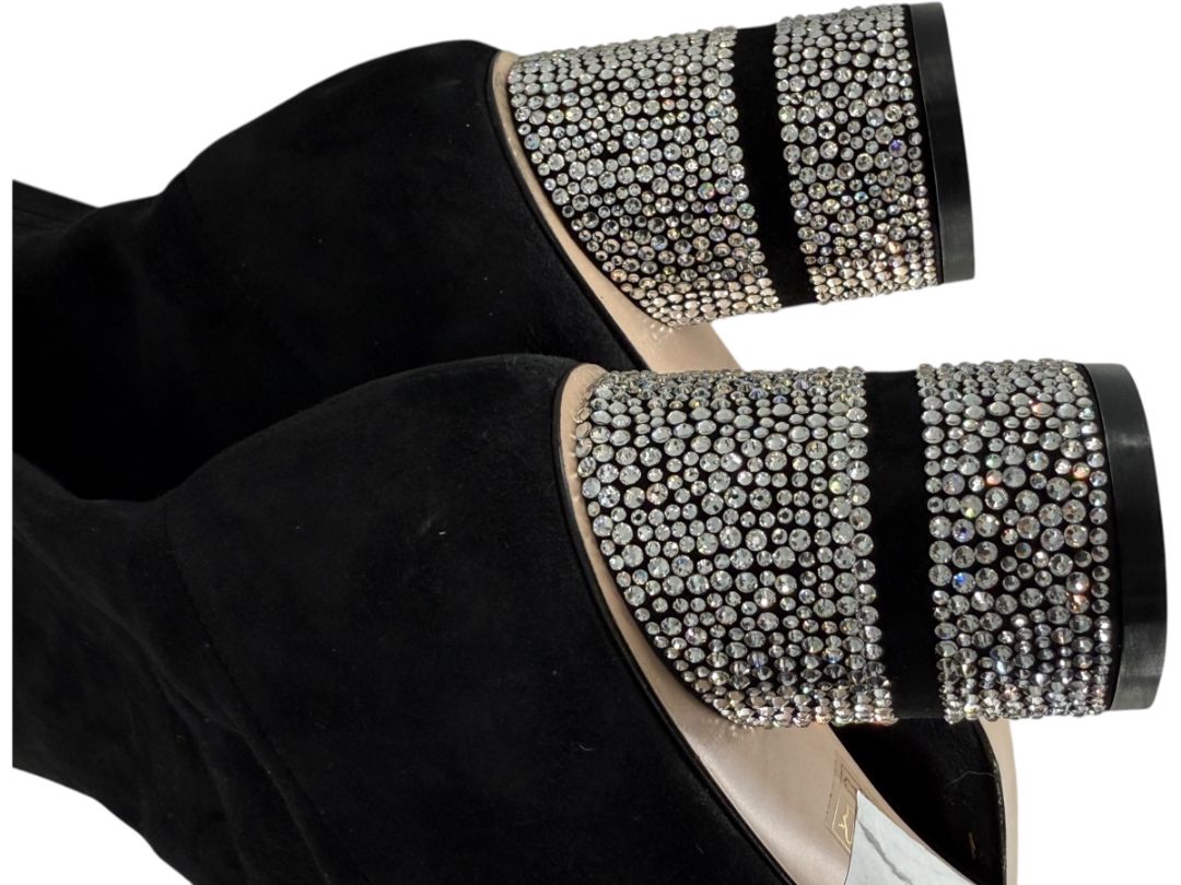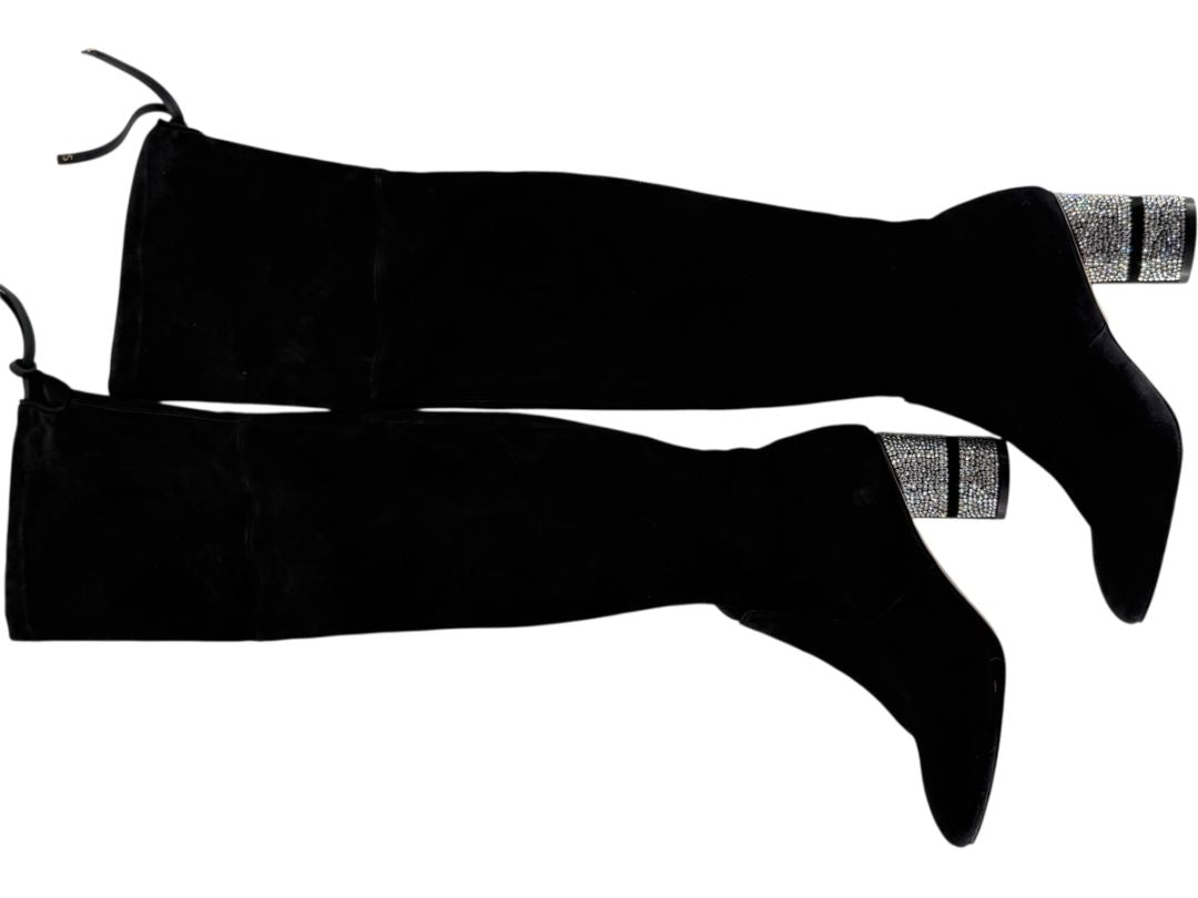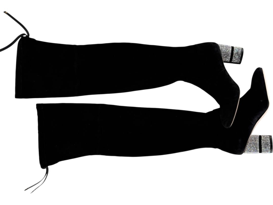 Stuart Weitzman Black Velvet Crystal Heel Over-the-Knee Boots – Size 9