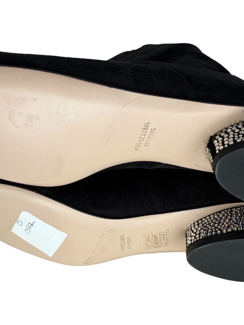 Stuart Weitzman Black Velvet Crystal Heel Over-the-Knee Boots – Size 9