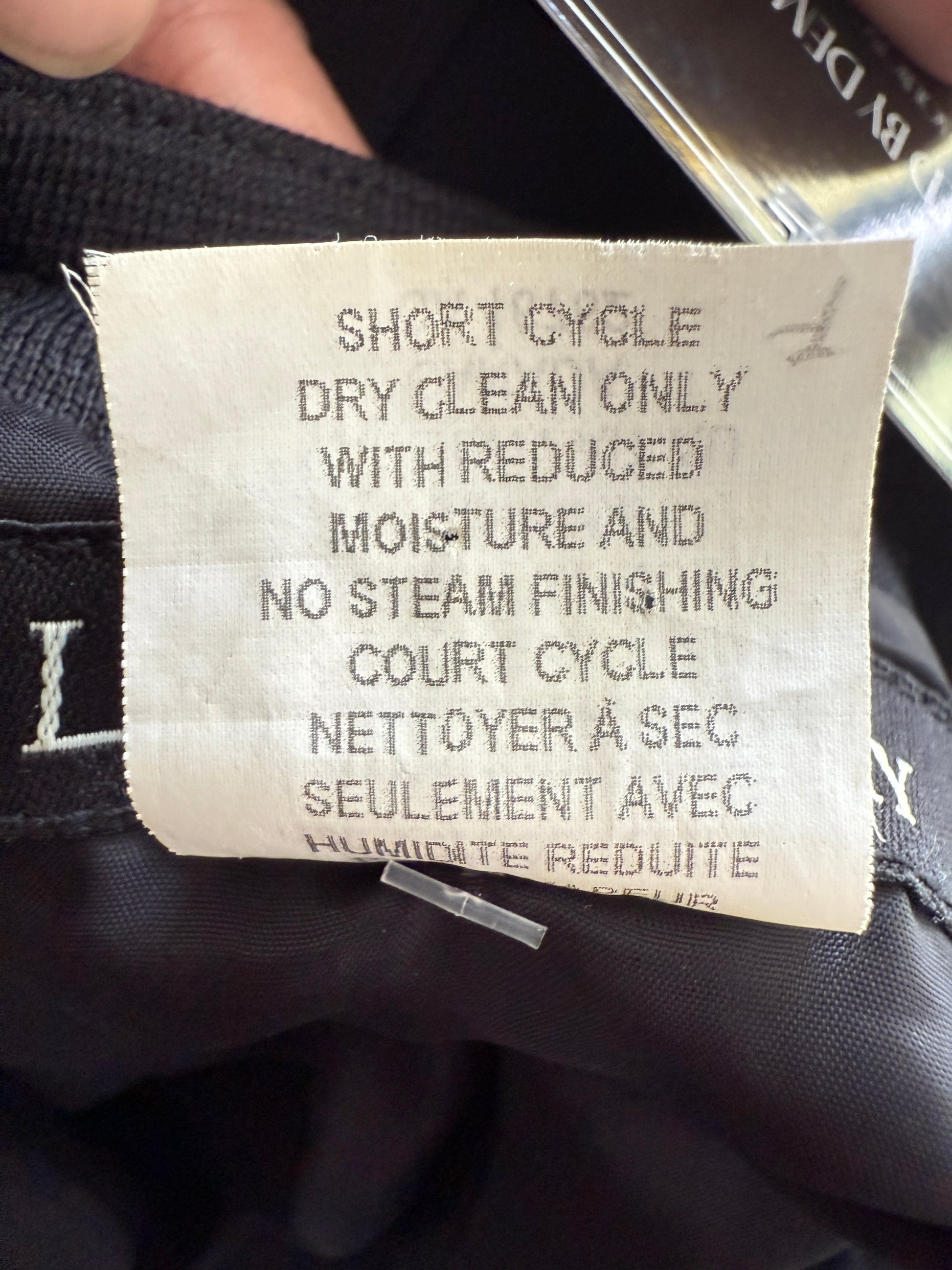 Care: Dry clean only (short cycle, reduced moisture, no steam finishing)